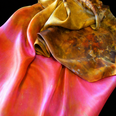 This silk flag set is hand-dyed in colors of bronze & cranberry which has the ombre gradual color change effect from bronze to cranberry.