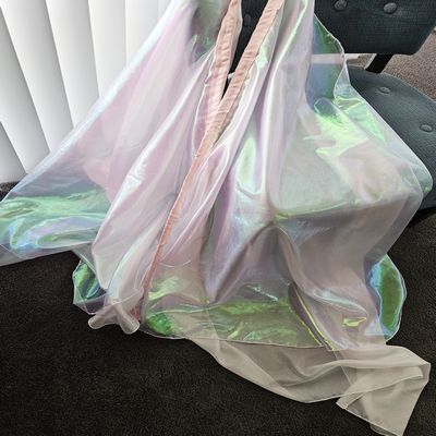 This is a gorgeous double layered flag set. The top layer is a clear lame' fabric, with touches of pink and rounded corners at the bottom. The second layer is 100% Silk in pure white.