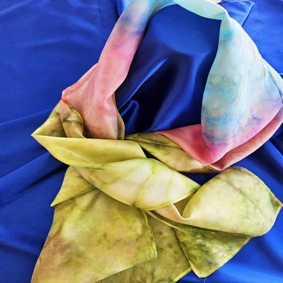 SILK SCARF: Avocado, Pink, Turquoise, hand-dyed