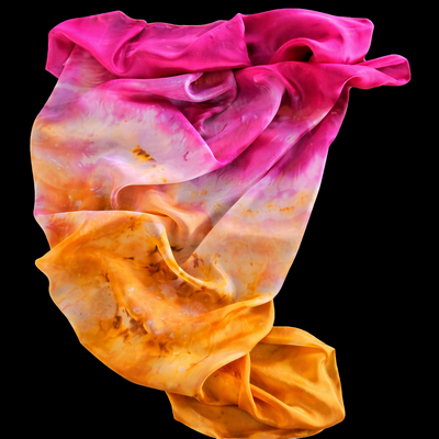 This silk is hand-dyed in colors of bronze & cranberry which has the ombre gradual color change effect from bronze to cranberry.